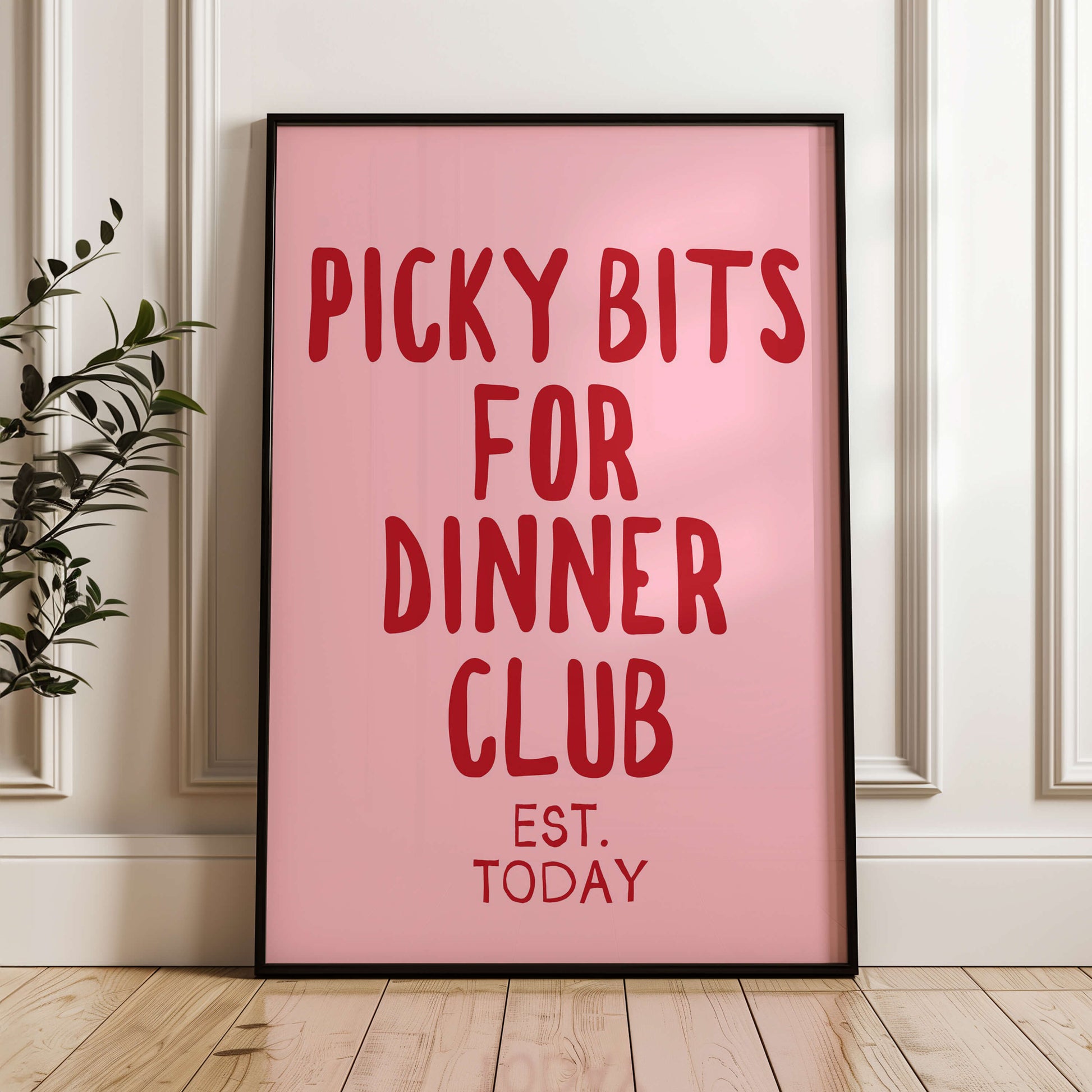 Add some fun, food-loving charm to your kitchen or dining area with our Picky Bits for Dinner Club wall art print. Perfect for those who love a laid-back grazing board or cosy tapas-style dinner, this bold pink and red typography print is a playful nod to modern kitchen culture and the joy of sharing food.